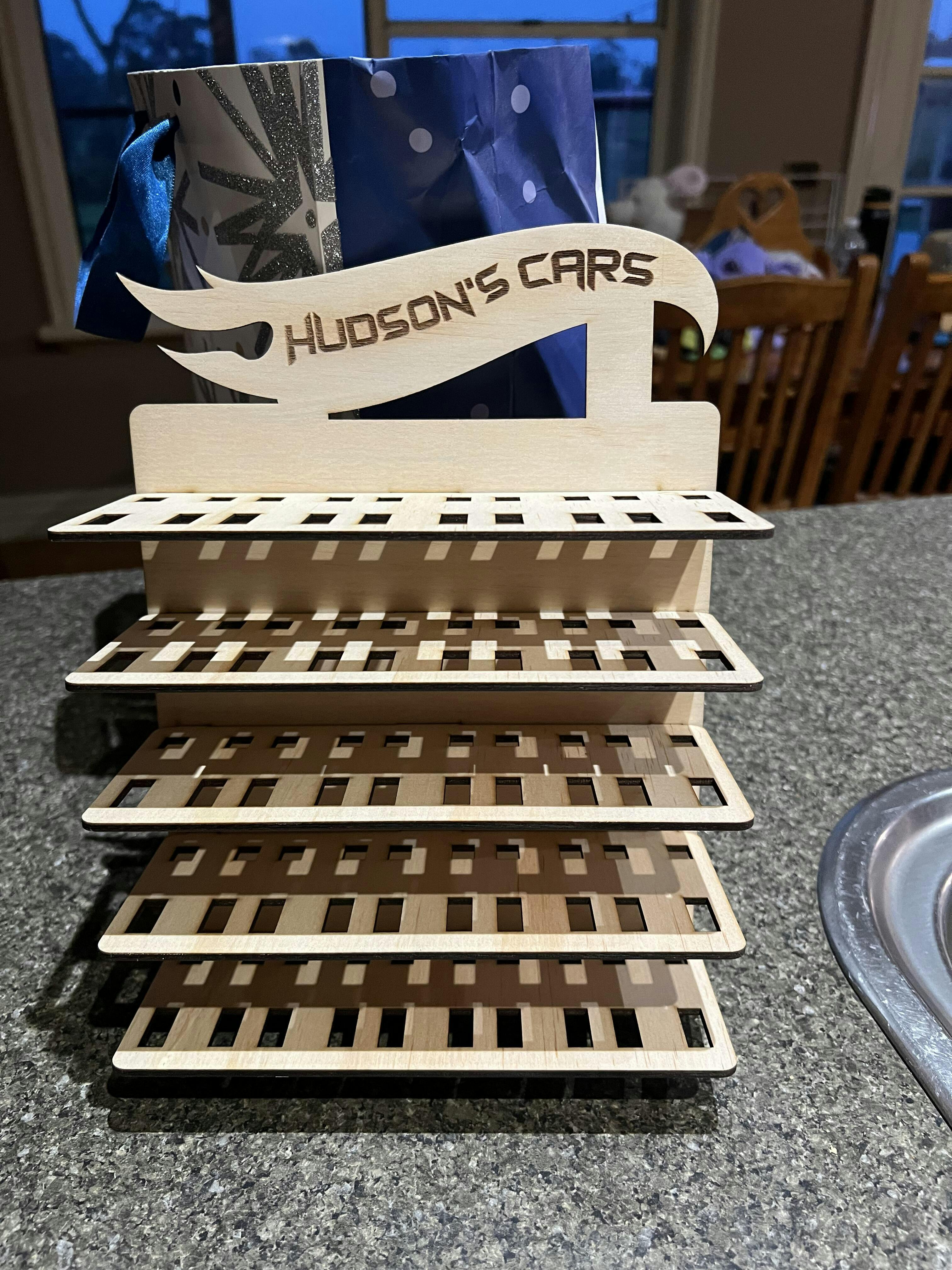 Made from 3mm plywood, this is a cool way to store those cars! Fits standard size matchbox cars.