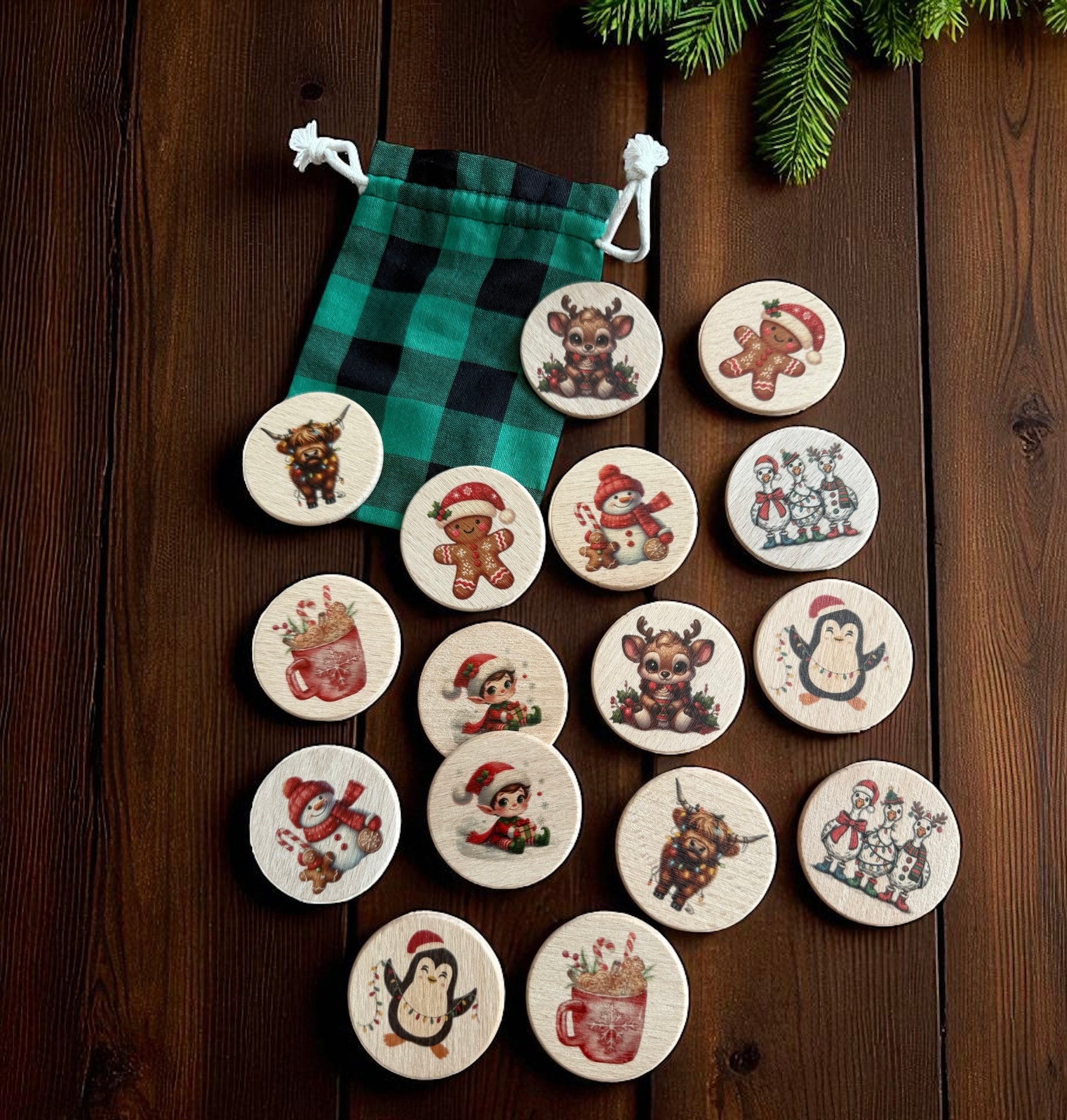 Set comes with 24 tokens (12 pairs) in a drawstring bag