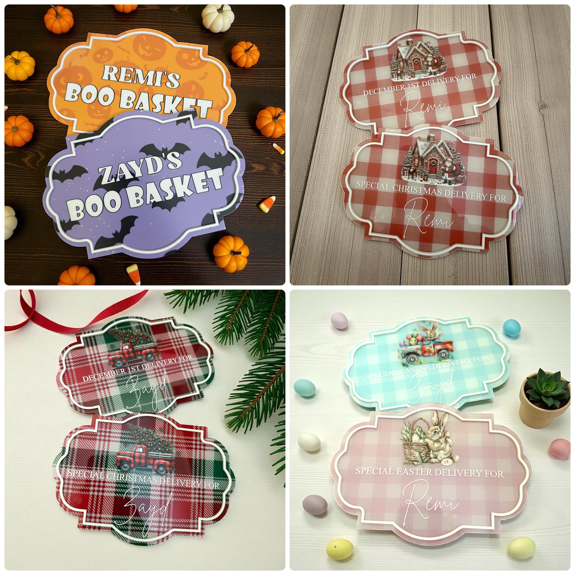 Each plaque easily attaches onto your crate with Velcro sticky dots, letting you switch designs throughout the year for any celebration. Whether it’s Santa’s special delivery, the Easter Bunny’s treats, a birthday surprise, or a spooky Halloween haul — your little one’s personalised crate will be ready for every moment.